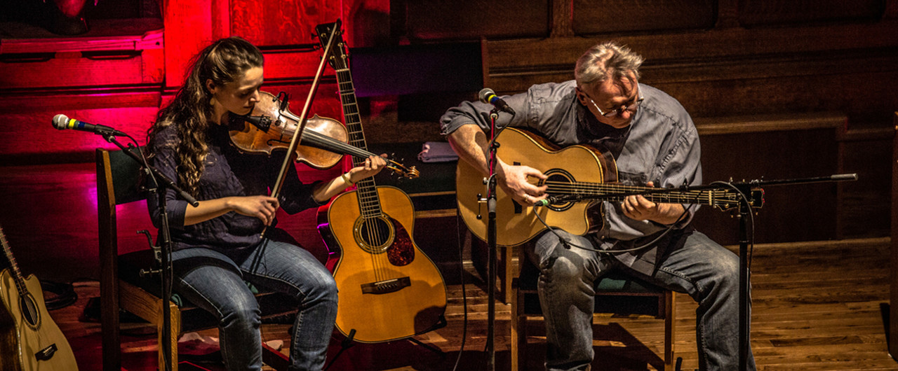 The duo’s guitar treatments of traditional music is unique, exploring the harmonic possibilities of these old, and sometimes not so old, tunes. Flat-picking or finger-picking at the highest level they are always very evidently at the service of the music while Julia's violin effortlessly morphs into a fiddle as she weaves from Italian madrigal to Scottish reel.