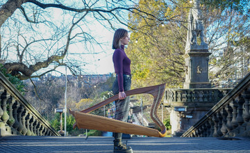 With the harp as her trusted companion, Dara Dubh captivates audiences with her authentic vocals and blend of musical genres.